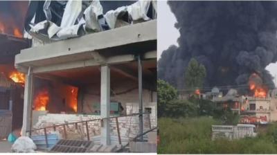 कपूरथला की गद्दा फैक्टरी में आग की भयंकर लपटें, कर्मचारी फंसा और धुएं का गुबार 20 किमी दूर तक छाया