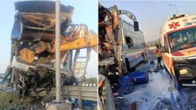 दिल्ली-मुंबई एक्सप्रेसवे पर भीषण हादसा, बस-ट्रक टक्कर में 3 की मौत