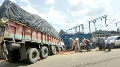 रेलवे ट्रैक पर आया ट्रक तभी धड़धड़ाते हुए पहुंची मालगाड़ी, धमाके के साथ सीधी टक्कर