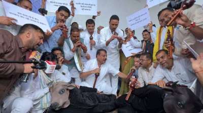 भोपाल। मध्य प्रदेश विधानसभा के मानसून सत्र का दूसरा दिन कांग्रेस के प्रदर्शन के साथ शुरू हुआ। कांग्रेस विधायक प्रतीकात्मक रूप से भैंस बने और उनके सामने अन्य विधायकों ने बीन...