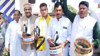 नकली सांप लेकर पहुंचे विधानसभा पहुंचे कांग्रेस विधायक, भंग करने के मकसद से अनोखा प्रदर्शन