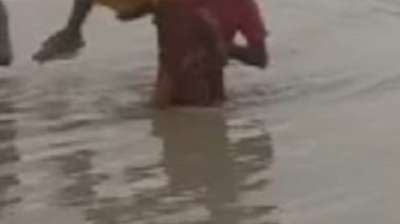 तेज बहाव में बाइक सहित फंसे बुजुर्ग, बेटा-बहू; समय रहते बचाई गई जान