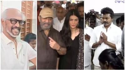 तमिलनाडु चुनाव: पोलिंग बूथ पर लगा सितारों का मेला, रजनीकांत से विजय तक ने डाला वोट।