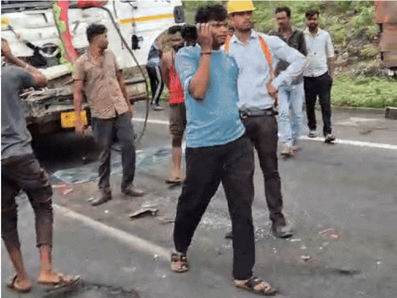 झिरा घाटी में सड़क पर खून ही खून, कंटेनर ने बाइक और कारों को चकनाचूर किया