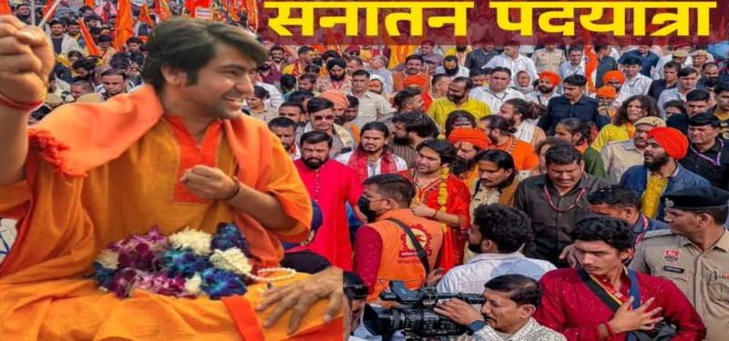 धीरेंद्र शास्त्री ने कहा कि हम चांद पर तिरंगा देखना चाहते हैं. उन्होंने कहा कि आज जितने भी सनातनी पद यात्री आए हैं, हम हाथ जोड़कर कहना चाहते हैं कि आप स्वयं सनातनी तो हो, अपने बच्चों को बनाने के लिये कहने की जगह करने की आवश्यकता है. करके दिखाने की आवश्यकता है.