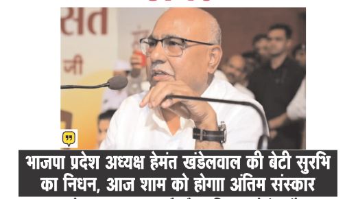 भाजपा प्रदेश अध्यक्ष हेमंत खंडेलवाल के परिवार में दुखद घटना, बेटी सुरभि खंडेलवाल नहीं रहीं