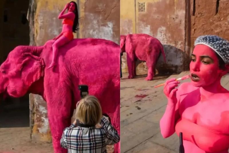 फोटोशूट के लिए गुलाबी रंगा गया हाथी बना मौत का शिकार, रूसी इन्फ्लुएंसर पर गिरेगी गाज