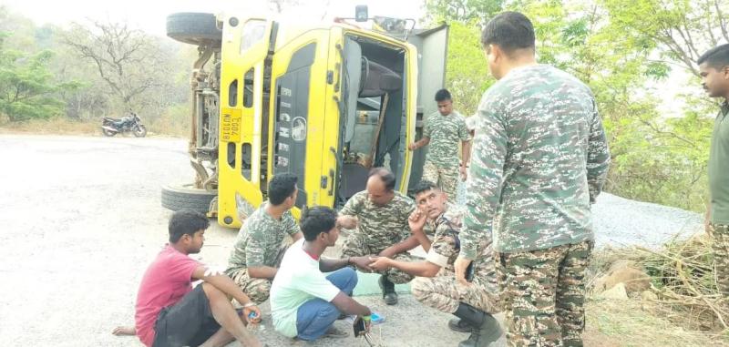 बड़ा हादसा: पुसपाल घाट में हाइवा दुर्घटनाग्रस्त, तीन घायल, CRPF ने दिखाई त्वरित मदद