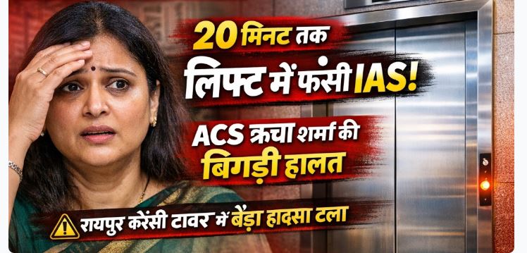 रायपुर। छत्तीसगढ़ शासन की असिस्टेंट चीफ सेक्रेटरी ऋचा शर्मा सोमवार सुबह वीआईपी रोड स्थित करेंसी टावर की लिफ्ट में करीब 20 मिनट तक फंसी रहीं। यह घटना सुबह लगभग 6:30 बजे उस समय हुई, जब वे श्रीराम मंदिर चौक के पास स्थित इस कॉम्प्लेक्स में साईकस जिम जाने के लिए लिफ्ट से ऊपर जा रही थीं।