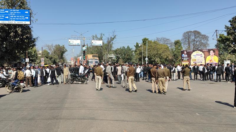 शिवपुरी वकील हत्या मामले में चक्काजाम, कपड़े उतारकर सड़क पर लेटे