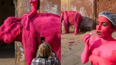 फोटोशूट के लिए गुलाबी रंगा गया हाथी बना मौत का शिकार, रूसी इन्फ्लुएंसर पर गिरेगी गाज
