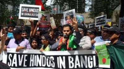 बांग्लादेश में अल्पसंख्यकों के खिलाफ हिंसा के विरोध में अमेरिका में प्रदर्शन