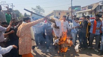 छतरपुर में हिंदू गौसेवकों का जोरदार प्रदर्शन, दामोदर यादव का पुतला फूंका