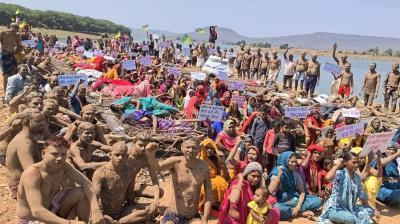 केन नदी में उतरकर शरीर पर मिट्टी लपेटा, विस्थापन के खिलाफ उग्र हुआ आंदोलन