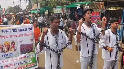 छत्तीसगढ़ में बी.एड शिक्षकों का अनोखा प्रदर्शन, कुछ लोग भारत माता-भगत सिंह, तो कुछ राजगुरु-सुखदेव बनकर निकले