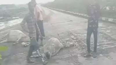 वाहन की चपेट में आने से 9 गायों की मौत...