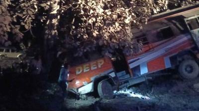 CG News: बिलासपुर-पेंड्रा रोड के केंदा घाटी में एक यात्री बस मोड़ पर कंक्रीट वॉल से टकराकर बेकाबू होकर पलट गई. पास स्थित पेड़ के सहारे बस टिक गई, वरना...