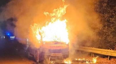 गोरखपुर: चलती एंबुलेंस में लगी आग, ऑक्सीजन सिलिंडर धमाके से फटा